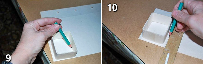 Крок 10: Тепер знову поставте заготовку на картон і обведіть зовні трохи більше, ніж скринька. І таких прямокутників треба зробити від 3 до 5 і склеїти їх між собою.