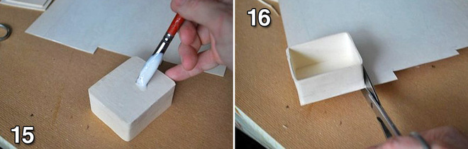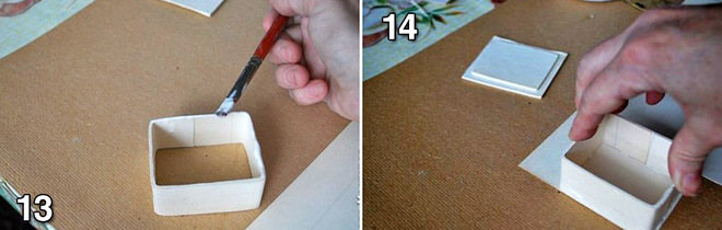 Крок 13: Робимо дно. На торці хатини шкатулки наносимо клей.