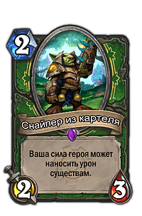 2-3 за 2 мани хороші характеристики, а ось здатність карти відкриває нові можливості для різновиду архетипів мисливця. Бліззард мабуть набридло, що мисливці в 99% випадком грають агресивними колодами через передсмертні хрипи. І вводячи таку здатність вони всерйоз хочуть, щоб гравці створили колоди контроль-ханта. Це вже друга класова карта яка обов'язково буде в таких колодах, тому що отримати абілка героя, яка завдає 2 шкоди куди захочеш буде шикарним вибором для контроль-ханта і на останок Снайпер може розігнати Газріллу.