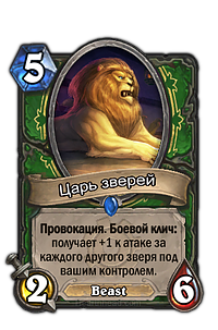 Безліч гравців дали Царю звірів негативний відгук і не тільки через жахливий дизайну карти, а за характеристиками карти. На арені у вас швидше за все не буде великого числа звірів і до того ж, щоб бойовий клич спрацював ваші звірі повинні бути на полі бою. Так що в більшості випадків ви будете отримувати таунт 2-6 за 5 мани, в рідкісних випадках 3-6.
