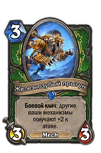 А ось перший і єдиний механізм у мисливця, але який. По-перше хороші характеристика істоти, по-друге бойовий клич: ваші інші механізми отримують по +2 атаки, в результаті маємо аналог дикого реву . Може бути відмінною фінішної картою в механічних колодах ханта. У всіх інших деках буде використовуватися вкрай рідко.