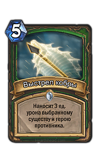 За 5 мани нанести 3 шкоди суті і противнику дуже дорого. Але карта звичайна і буде часто випадати при виборі, так що на арені вона буде досить часто потрапляти. Але тим не менше ефекти карти занадто малі для її вартості. краще візьміть Смертельний постріл за 3 мани і два чарівницьких пострілу по 1 мане, так ми ще й більше шкоди нанесемо.