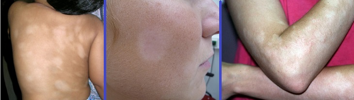 Захворювання супроводжується зміною кольору шкіри і зустрічається гущавину у дітей і підлітків. Його ще називають простий лишай. Характеризується появою сухих, лускатих білих плям з нечіткими кордонами на обличчі, шиї, передпліччях. Вони на шкірі більш помітні в літній час з-за того, що не змінюють колір при засмагу. Взимку уражені ділянки стають сухими і лущаться. Спочатку вони можуть бути у вигляді червоних плям, а потім бліднути. Причина невідома, але більше страждають люди, що проживають в теплому кліматі, а в інших країнах зустрічається зазвичай в літній час.