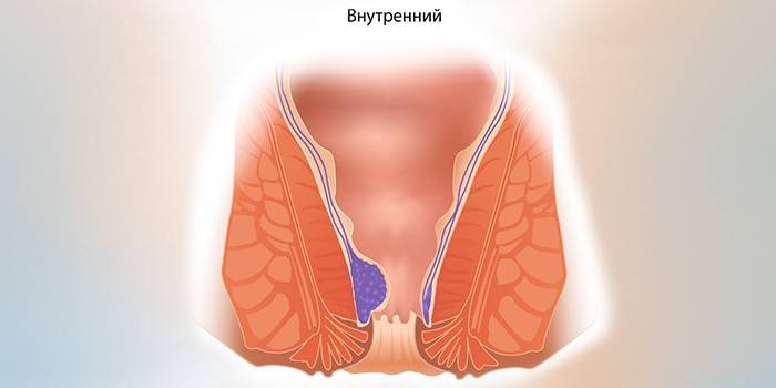 Тромбози гемороїдальних вузлів виявляються під слизовими оболонками прямої кишки, причому їх утворення рідко супроводжується сильним больовим синдромом. Самостійно визначити внутрішній геморой складніше, оскільки шишки при даного різновиду захворювання не випадають, крім того, відсутні кров'янисті виділення. Характерним симптомом, який можна помітити, є дискомфорт у прямій кишці, відчуття, що всередині знаходиться чужорідний предмет.