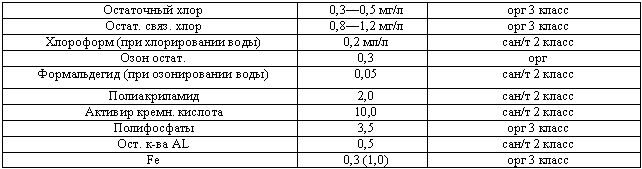Таблиця 1. Вміст шкідливих речовин, що утворюються в процесі її водообробки в системі водопостачання.