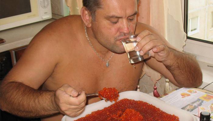 У чоловічому організмі червона ікра стимулює вироблення серотоніну і тестостерону. Від високої поживності продукту підвищується потенція. Мінеральні компоненти продукту насичують клітини мозку людини, покращуючи розумову діяльність. Легкоусваиваемий протеїн допомагає нарощувати м'язову масу. Делікатесний продукт корисний і для профілактики атеросклерозу, серцево-судинних захворювань, а цим патологій чоловіки схильні до частіше жінок.