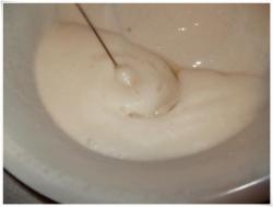 • Збити білки, додаючи цукровий пісок. Залишити на 2 хвилини суміш "меренговаться". Перемішати з горішками і пудрою. Додати барвник. Суміш повинна блищати і не бути занадто рідкою.
